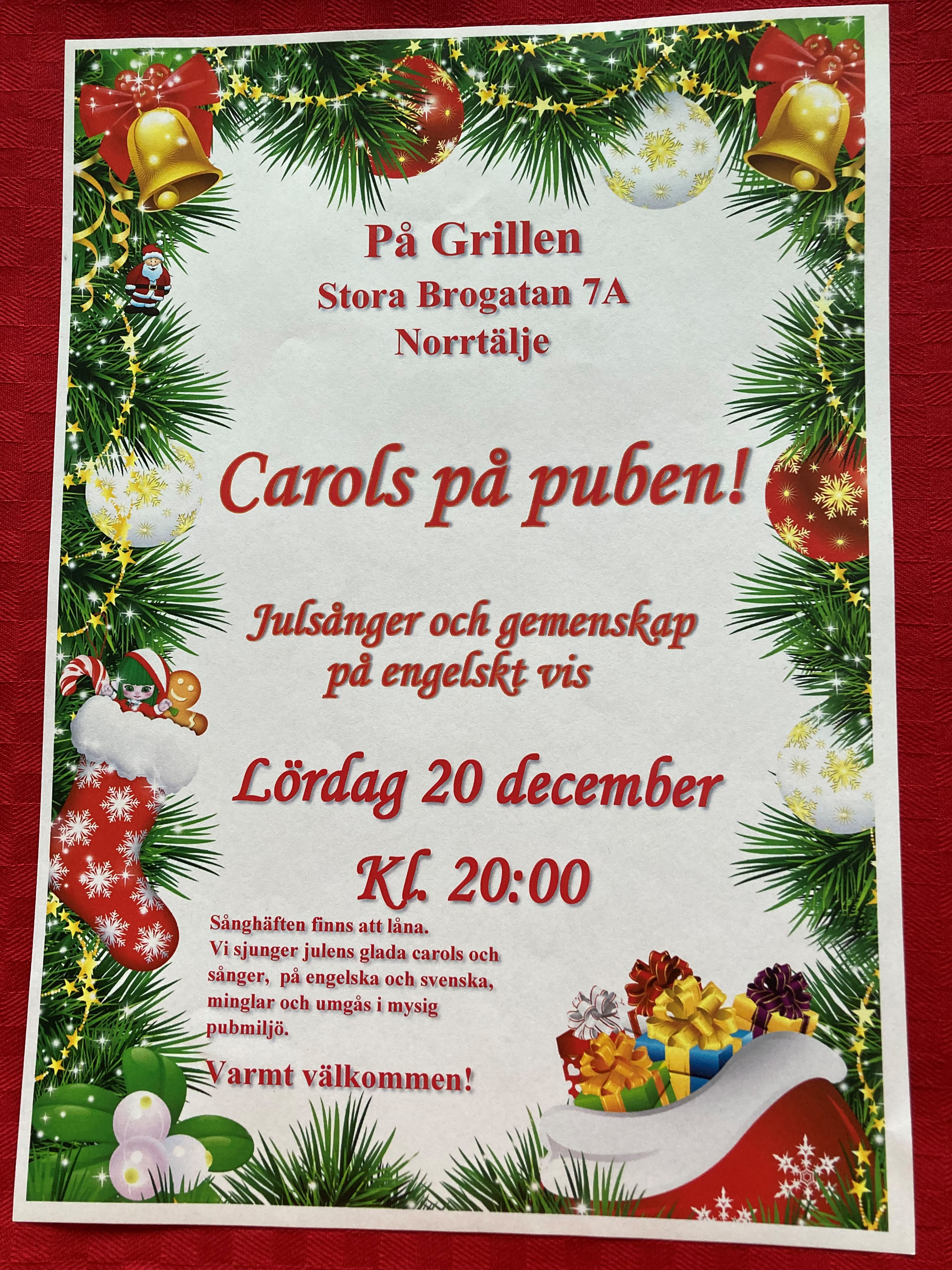 Vi sjunger julens glada carols och sånger, på engelska och svenska, minglar och umgås i mysig pubmiljö.