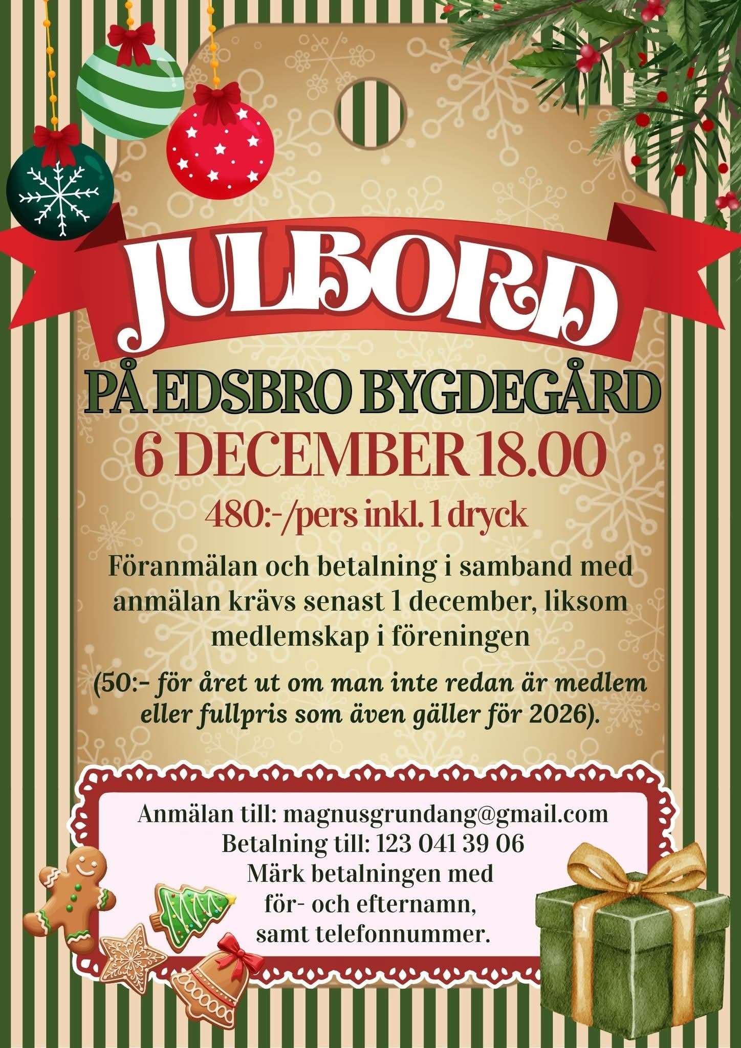 Äntligen dags för julbord på Bygdegården igen! Begränsat antal platser, så dröj inte med anmälan.