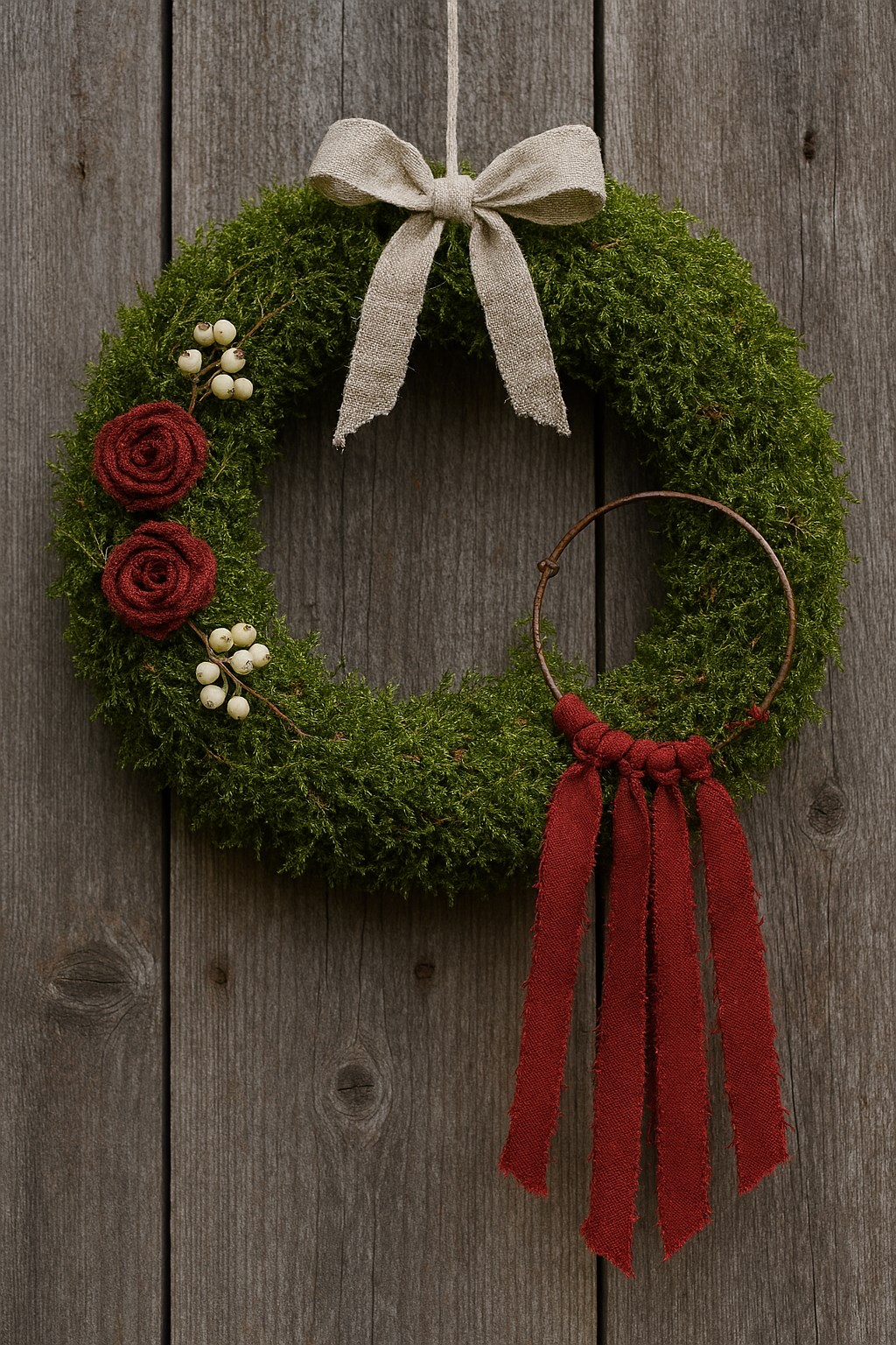 Vi tjuvstartar serien med ett mysigt adventspyssel där vi skapar en personlig mosskrans med återbrukade material.