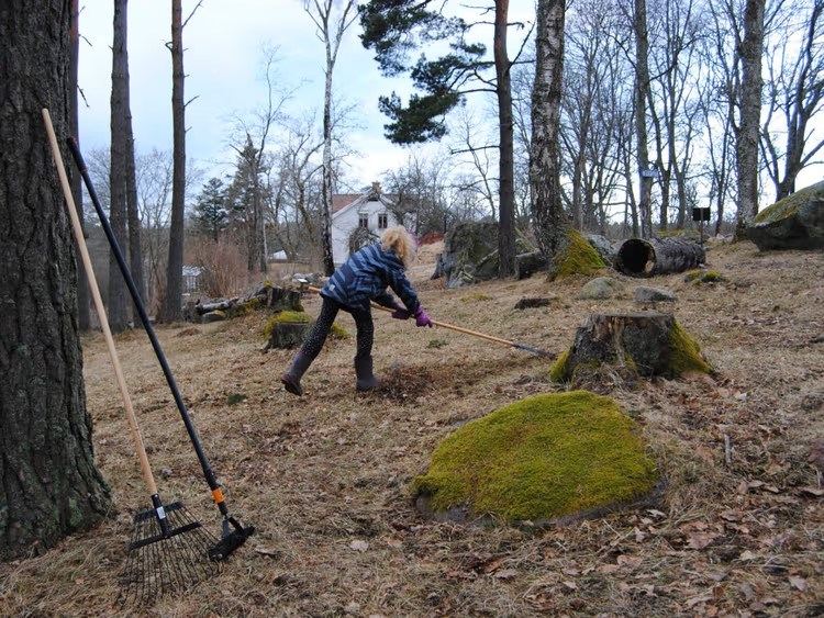 Fagning innebär att vi räfsar löv, kvistar och annat.