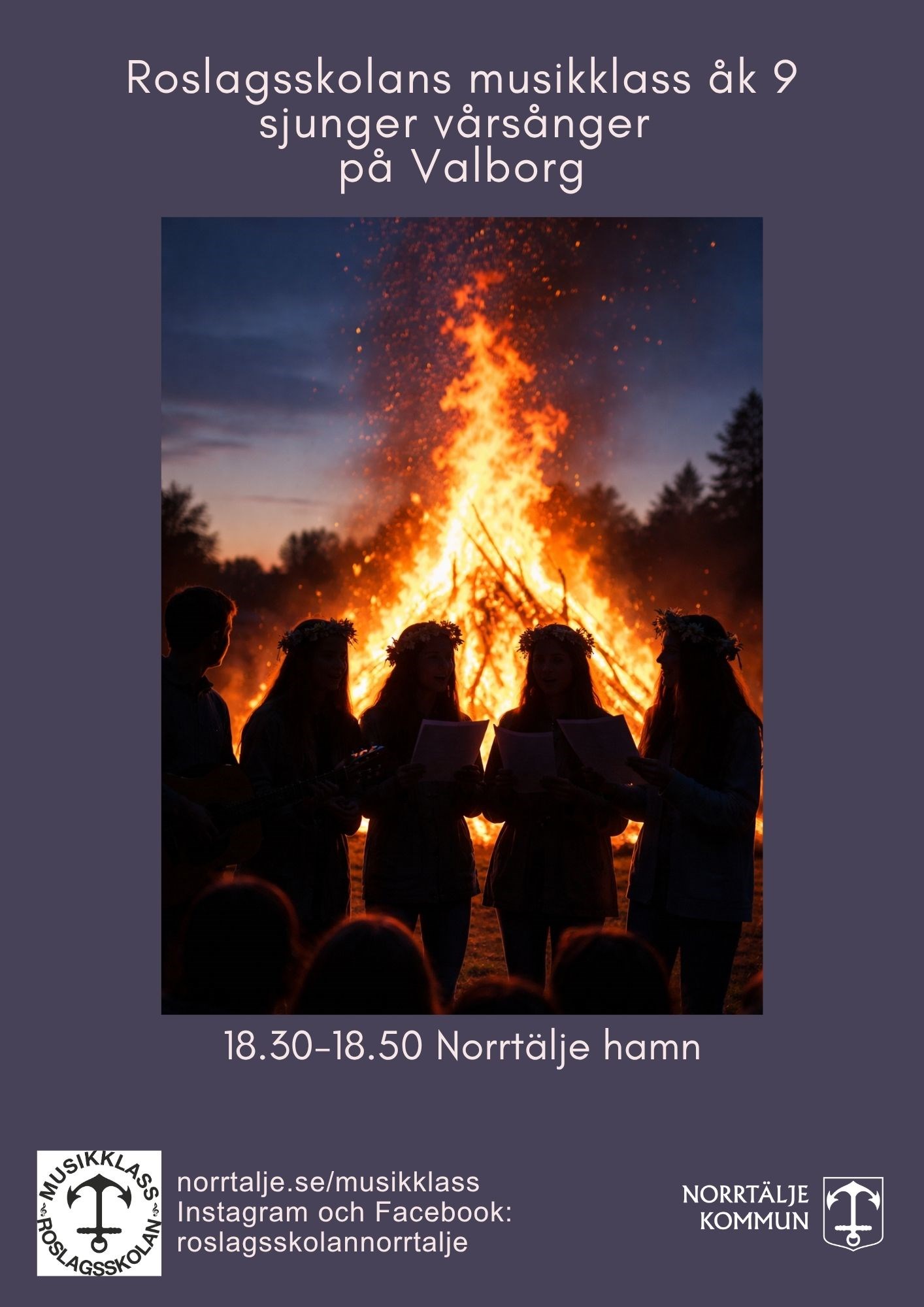 Roslagsskolans musikklass åk 9 bjuder på klassiska vårsånger vid brasan under körledning av Ester Årman. Välkomna!