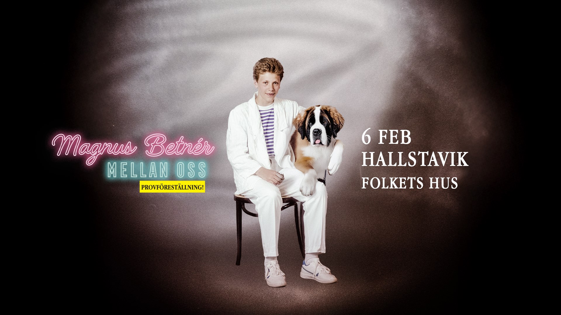 Få har rört upp fler känslor än vad Magnus Betnér har gjort under sina många varv runt Sverige. I ”Mellan oss” bjuder Magnus in publiken till en rolig och utlämnande standupshow där en (trots alla bevis på motsatsen) åldrande komiker vill visa en ny sida av sig själv. Eller kanske mer ett foto med fler färger än den svartvita bilden många har. Välkommen till en lika delar obekväm som inkluderande och (mellan oss) väldigt rolig föreställning.