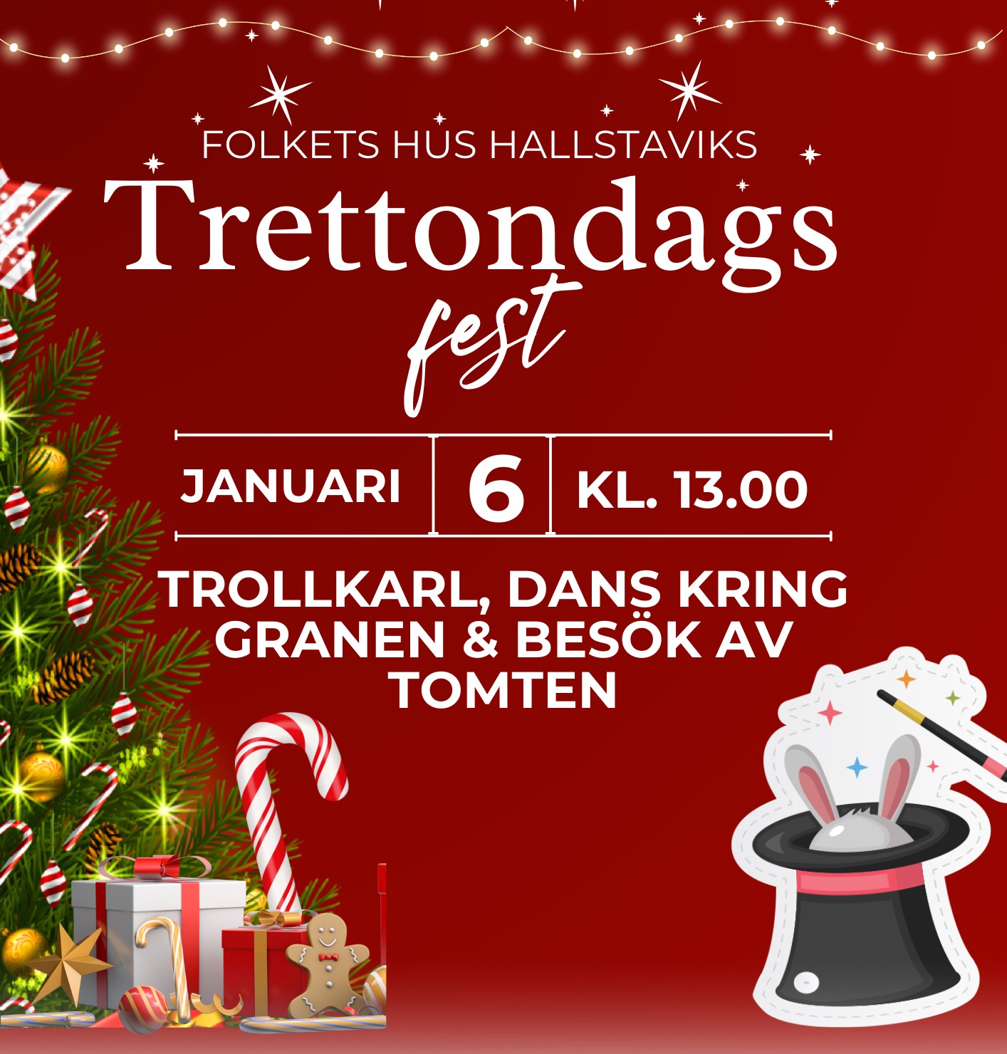 Vi börjar i Bio Rosen med en trollkarl på scenen, efter det blir det fika och dans kring granen. Sist men inte minst kommer tomten på besök med en överraskning till barnen.