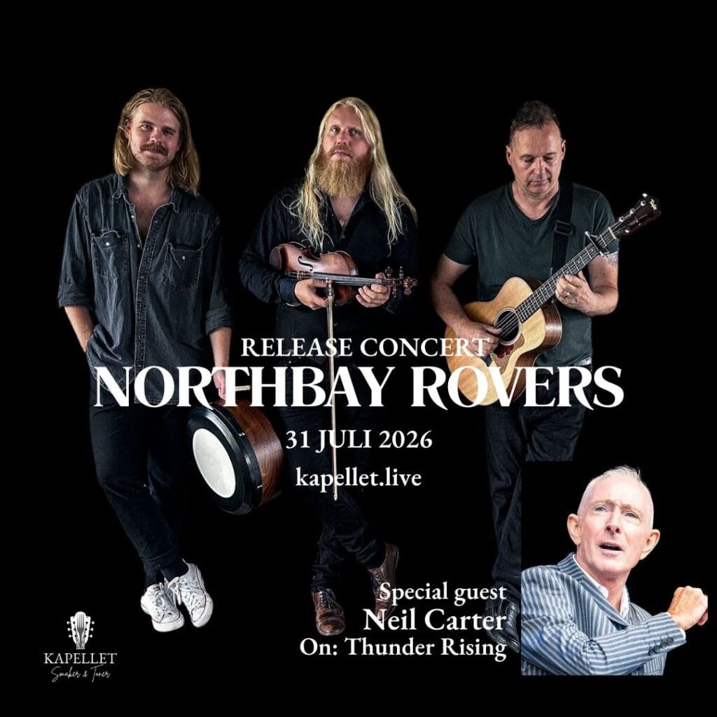 Releasekvällen 31 juli blir en helkväll med Northbay Rovers på scen, förstärkta av musikervänner – och med en extra krydda: special guest Neil Carter, som gästar på Thunder Rising. Räkna med svängig trad, tät stämsång och en riktigt härlig pubkänsla.