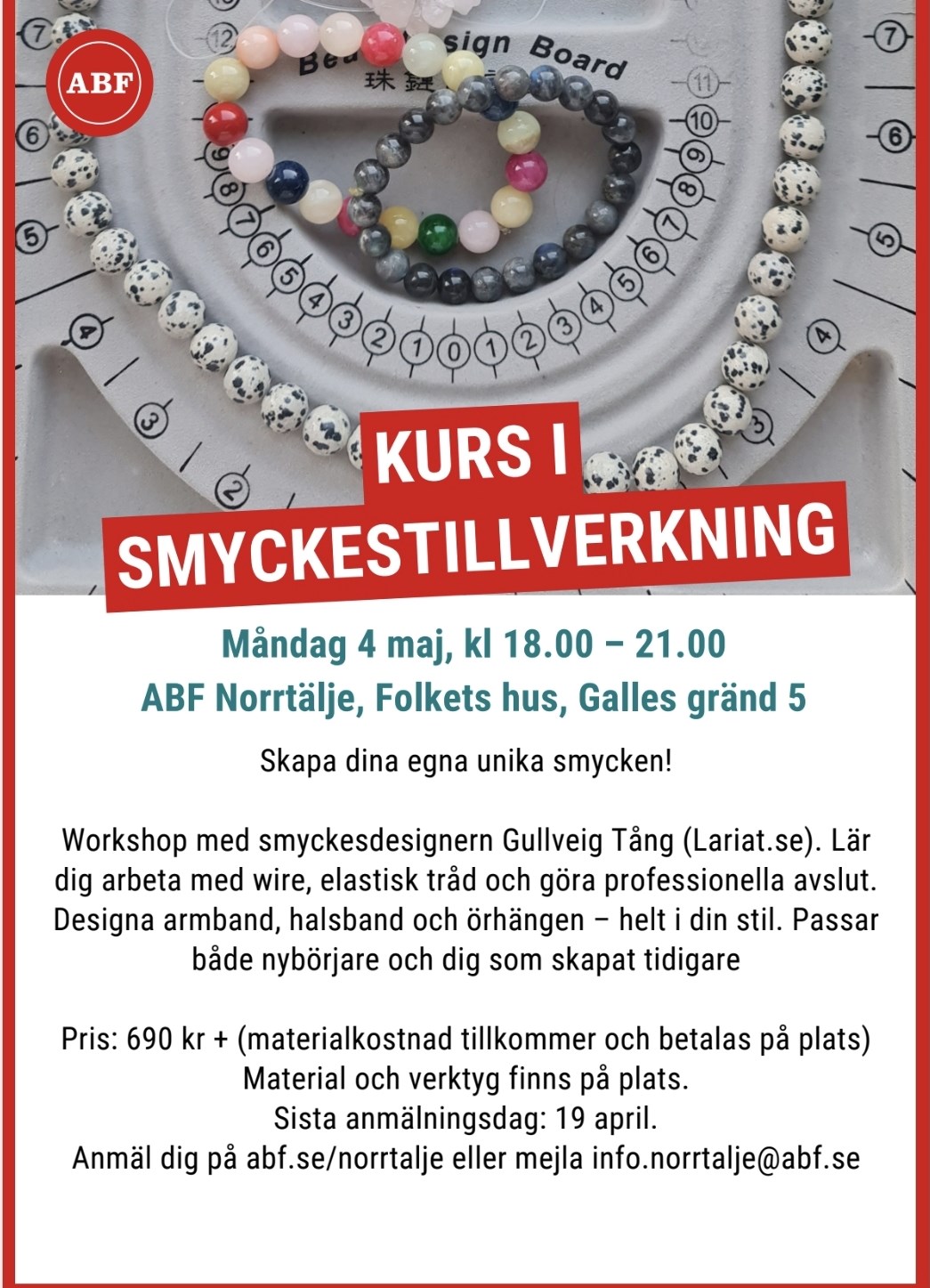 Materialkostnad tillkommer från cirka 100 kronor, beroende på material. Material finns att köpa på plats.