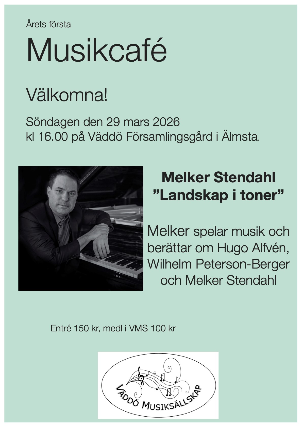 Melker Stendahl spelar musik och berättar om Hugo Alfvén, Wilhelm Peterson-Berger och Melker Stendahl på Väddö Församlingsgården i Älmsta.