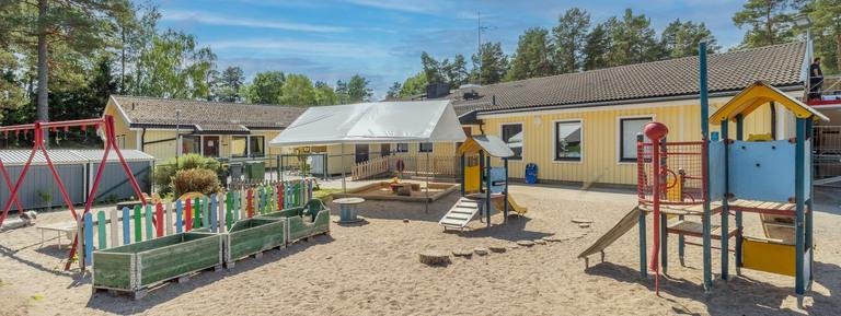 Vår förskola erbjuder en stor gård i en lugn omgivning. Vi har stora gräsytor, cykelytor och en liten skogsdunge runt knuten. Här utvecklas barn och pedagoger tillsammans med varandra.