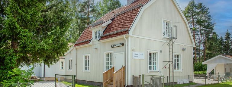 På Skebo förskola finns två avdelningar som är belägna i en utbyggd lärarbostad: