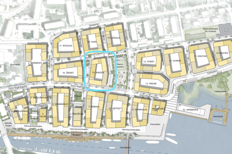 Granne med Hamnparken ligger bostadsrättskvarteret Smeden.