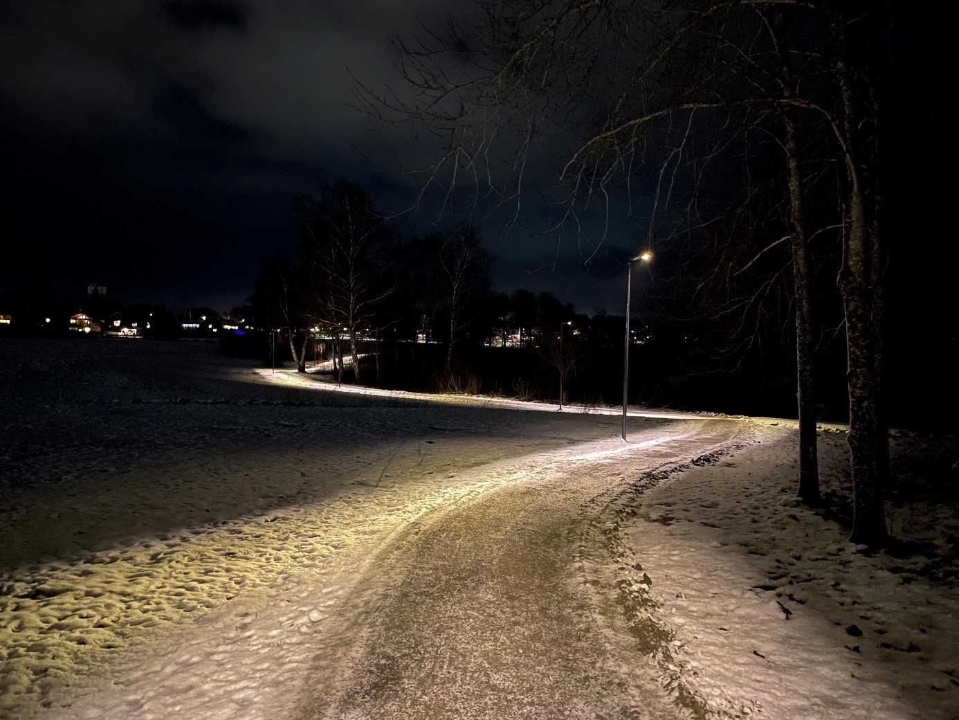 Anläggningen är också utformad för att minska ljusföroreningar. Ljuset riktas enbart mot gångytan, utan att spilla över mot sjön eller områden utanför gångbanan.