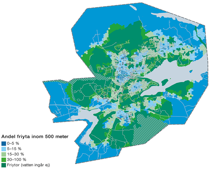 Bild: Andel friyta inom 500 meter (Spacescape, 2021)