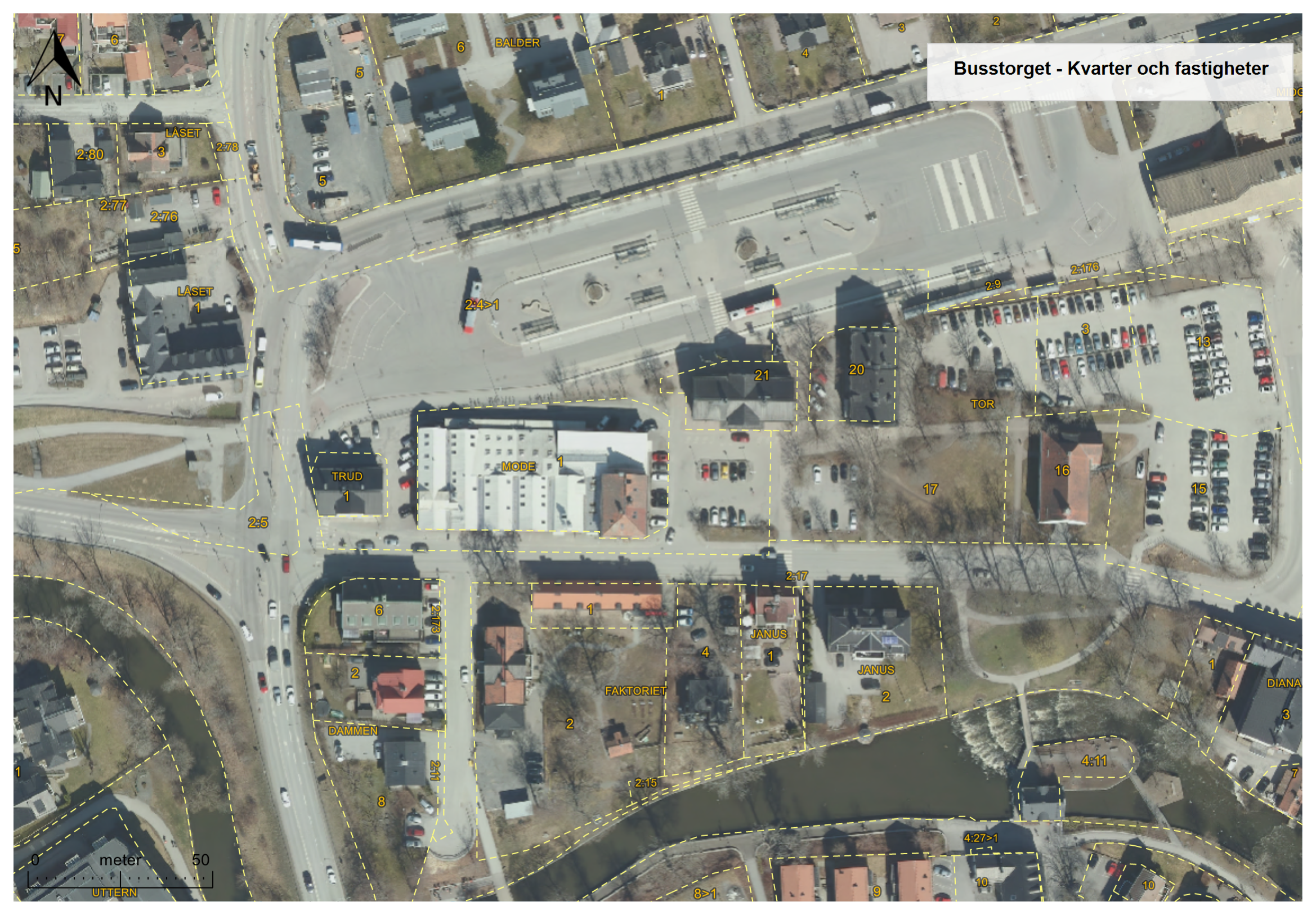 Utvecklingsområdet ligger inom stadskärnan men har idag en karaktär som inte samlever med stadskärnan. Området har flera otydliga kopplingar till omkringliggande områden vilket har skapat en plats som många undviker. De stora ytorna för busstrafik och markparkering skapar hårdgjorda, odefinierade platser som saknar stadskvaliteter. Närheten till stadskärnans kvaliteter, funktionen som knutpunkt för kollektivtrafik och lokaliseringen i gränsen mellan stadsdelar förser området med stor potential för förbättring.