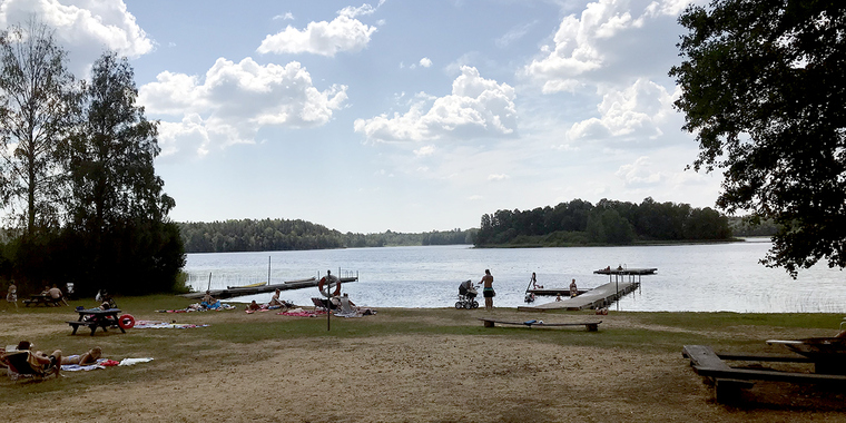 Badplatsen ligger strax söder om Edsbro, vid sjön Gisens norra strand. Här finns cirka 40 meter strandlinje och plan gräsyta som lämpar sig för både lek och avkoppling. Runt om badplatsen finns gott om lövskog.
