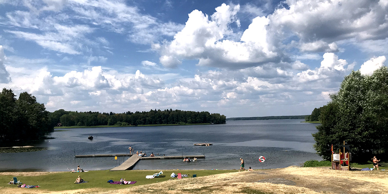Badplatsen ligger vid sjön Erkens östra strand, vid södra infarten till Svanberga samhälle. Här finns cirka 50 meter strandlinje med sandstrand och sluttande gräsyta i västerläge.