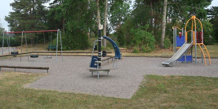 Lekplatsen ligger mellan Alvägen och Kungsbackevägen. Här finns en klätterställning för mindre barn, en snurrkarusell, gungor och en sandlåda.
