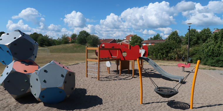 Lekplatsen ligger mellan Drottning Kristinas väg och Flygaregatan. Här finns en klätterställning i form av ett flygplan, en mindre gunga och en klätterkub samt en liten sandlåda. Fotbollsplan finns med 2 st mål. Lekplatsen är under utveckling och nya sittplatser och grill samt träd kommer under 2025.