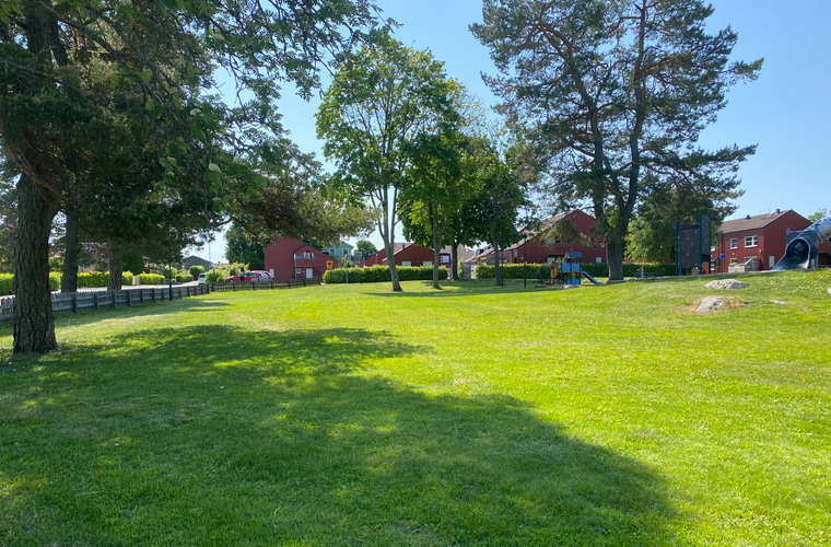 Parken är belägen i hörnet av Håstavägen och Parkvägen.