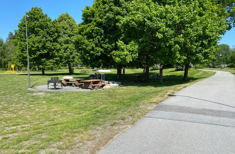 Här finns stora gräsytor och naturliga planteringar med mestadels lövträd. Skarsjöparken i Rimbo har rustats upp. Resultatet har gett att man har rustat upp pulkabacken, belysningsanläggningen och beskurit träd för att öka tryggheten i parken. Utöver detta har man byggt en samlingsplats under tak med grillar, en grillplats under bar himmel, pumptrackbana, discgolfbana, basketplan, linbana, nya gungor, en scen, ett ute gym, balansbanor en hundrastgård med mera. Parken omgärdas av grönytor och träd.