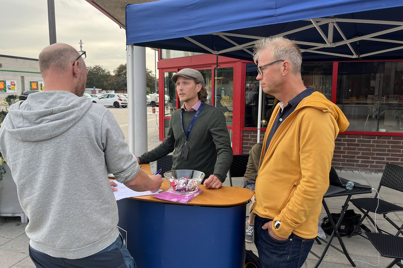 Representanter från bygglov, geodata och miljö och hälsa besökte Hallstaviks torg för att svara på invånarnas frågor.