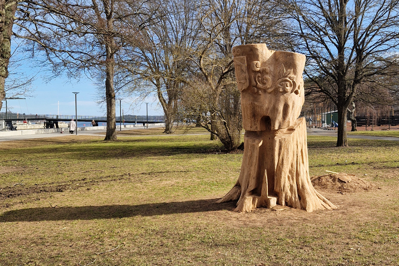 23 mars 2026Norrtälje har fått ett nytt konstinslag i Societetsparken: stubben av en alm har förvandlats av motorsågskonstnärer.